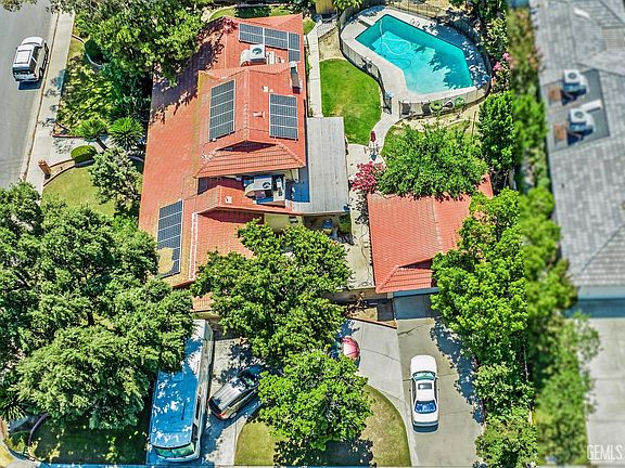 Take a look at this corner lot, 4-bed, 2-bath home in Stockdale Estates with OWNED solar and newer dual pane windows! Heading inside the two story floor plan, you will fall in love with the high ceilings and open living spaces. The kitchen features tile countertops, SS appliances, and breakfast bar seating. The bedrooms are all spacious in size with large closets. Stepping in the backyard, you will find the large covered patio, sparkling swimming pool, spacious grass area, as well as a large detached 2-car garage w/ its own bathroom and wine cellar. Do not miss out on all the potential that this property has to offer, schedule your private showing today!