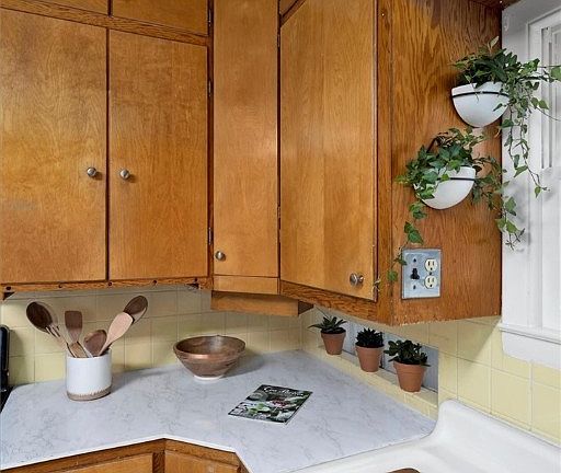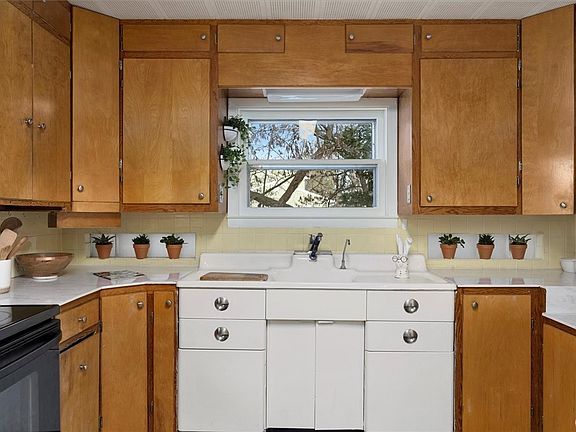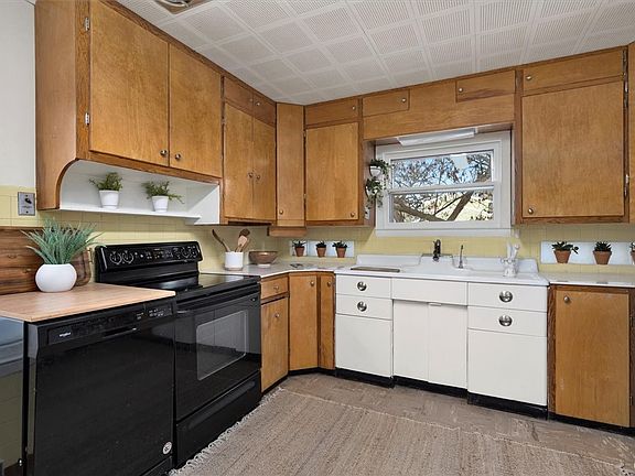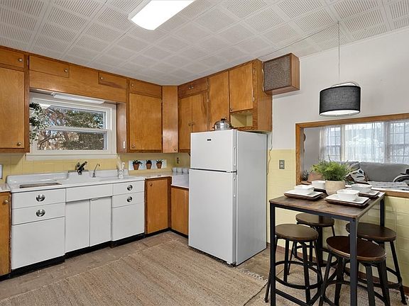 4 bed 1 bath 1500 sq ft. Cape.A Mid Century Modern flair ...Concrete block with "glass brick" and arched door ways...tons of storage..eat in kitchen..large light filled living room...2 bedrooms down and 2 up.Nice corner lot and 2 stall detached garage