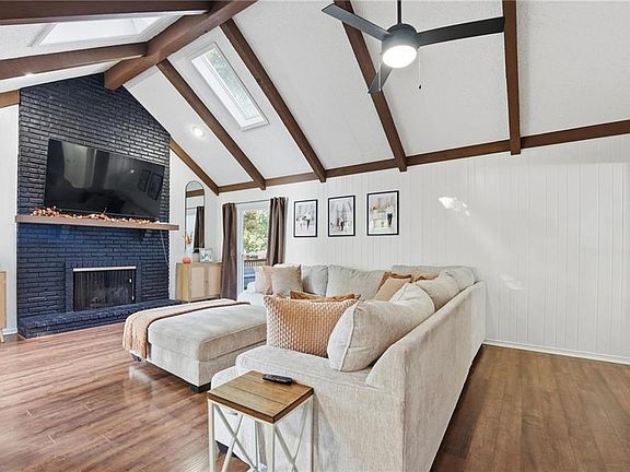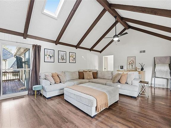This fabulous story and a half will knock your socks off! There have been so many amazing updates. It is move-in ready!! On the main level you will find a BIG living room with glorious vaulted ceilings, sky lights, and exposed beams. The floor to ceiling fireplace is a show stopper! The kitchen has updated flooring and professionally, painted cabinets. There is room for a breakfast table too. The laundry room is conveniently located off the kitchen. The dining room is stunning in black and white! The primary suite is on the main level and has two closets, a full bathroom and sliding glass doors to the deck, that allow for tons of natural light. Across the hall is a 2nd big bedroom with a wooden accent wall and access to another full bath, just outside the door. The carpet on the main level and up the stairs is all BRAND NEW! You will find two more large bedrooms and a refreshed full bath upstairs! One of the bedrooms is huge, with two closets! The other bedroom is still big and has a walk-in closet. Every inch of the interior of the house has been painted over the last two years. Downstairs is a big rec room with newer carpet and paint. Tons of space to spread out! You will also find loads of unfinished storage space!! There is bathroom stubbing downstairs too. The main sewer line, from the house to the city connection, was FULLY replaced in 2023. On the exterior, you will find newer windows, a 50-year composition roof, Hardie Board concrete siding, and oversized gutters and downspouts. The water heater was new in 2022. The backyard is perfect for entertaining or just relaxing on the patio with the outdoor kitchen area ready for your grill! You will also have the convenience of the neighborhood pool just a stone's throw away... but not directly in front of your house! This one is a 10 out of 10. Come quick and fall in love with your new home!