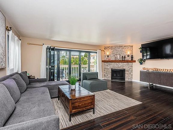 Beautifully remodeled throughout and bursting with character, this is an immaculate Carlsbad home that anyone would be proud to call their own! Enter inside its 3-bed, 2.5-bath layout to discover an array of fine elements on display, from the solid bamboo hardwood flooring to the main gathering areas bathed in brilliant natural light. Your living and dining rooms offer a generously sized open plan design with a striking stone fireplace in the corner for extra warmth and ambiance. High-end and stylish easy-glide folding doors open to an expansive front balcony, ideal for relaxing in the sun. Take a seat at the kitchen's breakfast bar while the avid chef enjoys creating magic with state-of-the-art Bertazzoni appliances. After hours, retire to your gorgeous, private primary suite just steps away with its on-trend double barn doors, shelved walk-in closet, and the designer bath's decadent soaking tub and frameless glass shower enclosure. Downstairs, you'll have a self-contained 2-bedroom, 1-bath area, with separate kitchen, living area, and additional flex space ideal for a gym, office, etc.