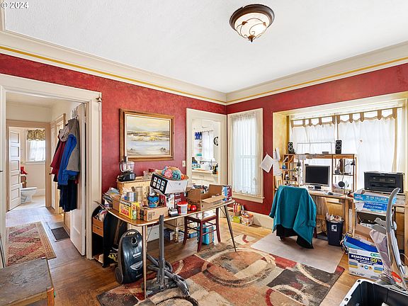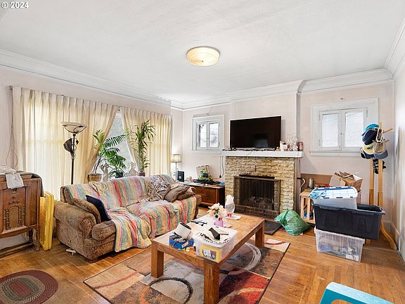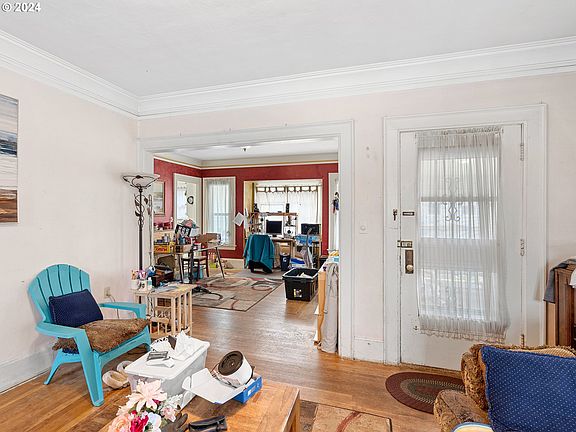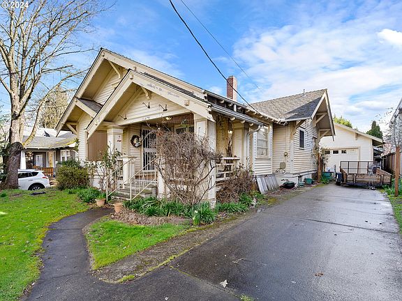 Seize a prime opportunity in the thriving Kenton community with this delightful bungalow! Featuring sturdy construction and a fully finished basement, this property simply awaits cosmetic enhancements to reveal its full potential. Revel in the timeless allure of hardwood floors, accentuated by elegant crown moulding, and abundant natural light flooding through generous windows (hidden by curtains at the moment). This home boasts a smart, functional layout: on the main level you'll find two bedrooms, a full bath, and expansive living, dining, and kitchen areas. The lower level with separate exterior entrance offers versatility, adaptable to your needs - ideal for a home office, entertainment hub, or guest accommodations. Those with more creative ambitions could consider converting both the basement and detached garage (20x24ft) into ADUs. This property offers endless opportunities! Benefit from ample parking with an elongated driveway leading to a detached garage, complemented by convenient on-street parking. Don't miss this chance to capitalize on a promising investment in one of North Portland's most sought-after neighborhoods! R2.5 with two 25x100 historic tax lots - prime for development if desired.