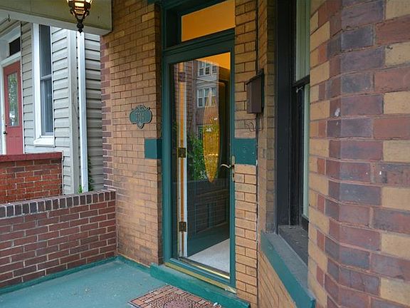 Charming blend of old and new--updated Victorian with spacious rooms, great storage, & central air. Covered front porch leads to large entryway with beveled and stained glass. 1st floor features open floor plan, exposed brick, high ceilings, full bath. Decorative fireplace in gracious living room. Huge dining room with decorative cast iron wood stove leads to well-appointed kitchen via peninsula. Kitchen has plenty of storage and counter space, cherry-finished wood cabinetry. 2nd floor features 3 bedrooms and another full bath. Exposed brick continues in 2 of the bedrooms. Generous-sized master includes walk-in closet with built-ins. 2 more large rooms on 3rd floor, currently unheated, great potential. 2 off-street parking spaces in rear. Very convenient to shopping and transportation.