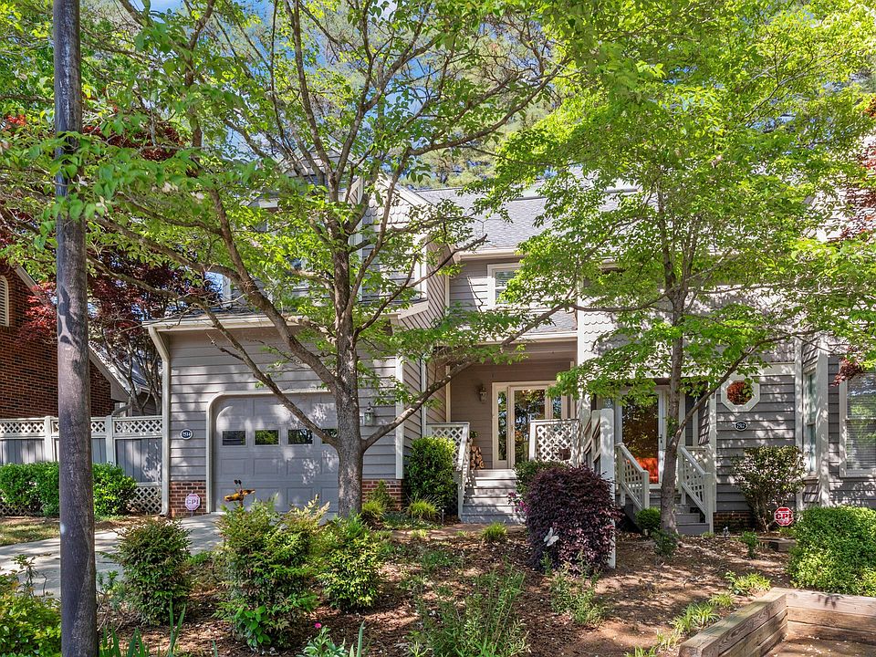 Terrific N. Raleigh townhome in well established community 2 bedrooms -( lives like a 3 bedrm),, 2.5 baths, great office w/closet and sitting area (no window) - a terrific blend of finishes, comfort and style. Mature landscaping throughout this peaceful setting with walkable lake views - setting the tone for the privacy you have wanted. Spacious first floor with living room and dining area,, updated kitchen with quartz, counters, breakfast nook and lovely sunroom. Stylish stairway to second level - where primary suite, a beautifully updated bath with dual vanities and expansive shower await. Space for an office/computer room/exercise area with good closet and sitting area. Front bedroom with great natural light has window seat overlooking the lake. Comfortable space with new roof (2023), windows have been replaced, new skylight, epoxy flooring in garage w/insulated ceiling,, exterior maintenance and landscaping handled by HOA. All this in the location you have been looking for - close to shopping, restaurants, recreation, RDU airport - with easy access to 540 and 440. Come by Winchester Pointe - to enjoy the convenience - coupled with the charm of this community nestled by the lake.