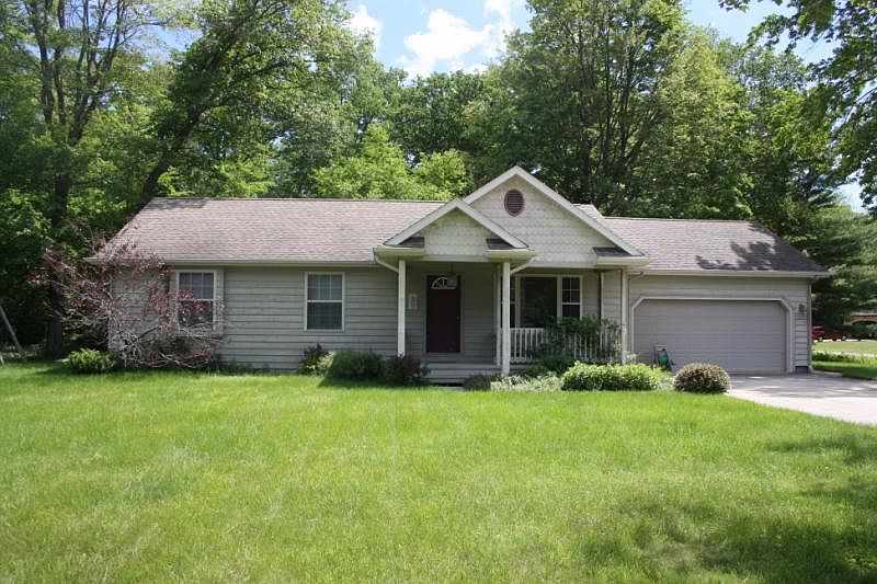 Inviting three bedroom, one and a half bath, home situated on a large corner lot in Lakewood Shores. Unique features including a tongue and groove cathedral ceiling in the living room, arched doorway to the dining, and a trey ceiling in master bath. Hardwood floors in kitchen and dining room. Patio door in dining leading to wooded back yard and rear deck. City water for home and well water for yard irrigation system.