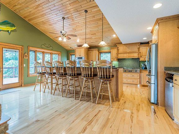 This captivating remodeled home is nestled on 4+ acre in private Princeton location. Amazing wood finishes throughout the main level, wood slat cathedral ceiling and stone surround 2 sided fireplace are just some of the things that make this home one of a kind! Gourmet kitchen equipped with high end appliances, large 2 level center island, hard surface countertops, vented hood, walk-in pantry. Wrap around deck and patio provide amazing panoramic wooded views. Pole barn and cement slab with 30 amp electric perfect for RV hook up.