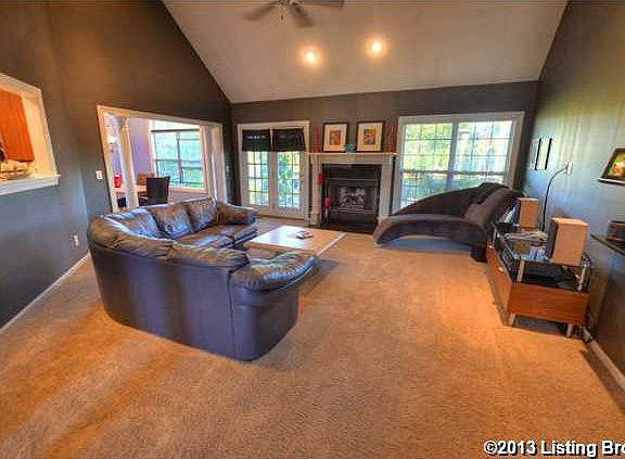 Updated, Contemporary, High-Tech, and Luxurious! This five-bedroom 3 bath brick ranch with walkout finished basement and open floor plan features a spectacular media room, covered deck and approximately 3940 Sq. Ft. of entertaining and living space. Walk into an impressive formal entryway and through columns that leads to a large great room with vaulted ceiling and gas fireplace (take a look at the pictures). The great room leads to a beautiful covered deck that looks out to a large private backyard. The updated gourmet kitchen features stainless steel appliances, Corian countertops, abundance of Maple cabinets, breakfast bar with center island, planning desk ceramic tile backsplash, five burner gas range, pass-through to great room, pendant lighting and down lighting. There's a formal dining room off the kitchen with a view of the beautiful backyard. The master bedroom suite is enormous with a double tray ceiling; French doors that lead out to the uncovered portion of the deck and down lighting. The master bathroom features a two-person tub, separate walk-in shower, double sink vanity, private water closet and large walk-in closet. There are two other bedrooms on the first floor that share a Jack and Jill bathroom. A half bath off the formal entryway finish out the first floor. The walkout lower level will literally knock your socks off! There's a large media room with a 106 inch screen and cinema quality sound for starters! A central gathering room, entertaining area, pool table area, full wet bar with commercial icemaker, refrigerator and what could easily be a wine cellar. There are two other good-sized bedrooms and bathroom on the lower level as well. Deer come through this 2+ acres of property just about every night! Other features include two fireplaces, dimensional roof(2.5 years old), extra tall ceilings and vaults in several rooms, a 10 x 20 outbuilding, 5 ton HVAC system and award-winning Oldham County schools.