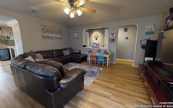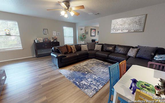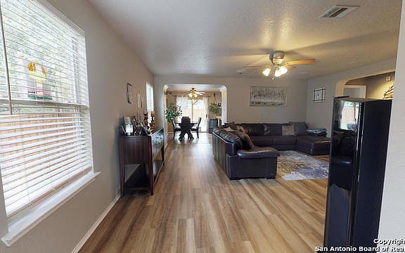 Enjoy your next get together, watch the game or read a book in the park like backyard of this Live Oak home. Stone covered patio. Nicely improved master bath and an electric fireplace in the mast. bedroom. Tile backsplash in the kitchen and appliance stay. Green belt on 2 sides of the property. Roof 2/2019.Fence in 2017. Security system. LR surround sound. Recent int paint and flooring. Close to Randolph and NE Lakeview college. Come see this beautifully upgraded home in a well established neighborhood