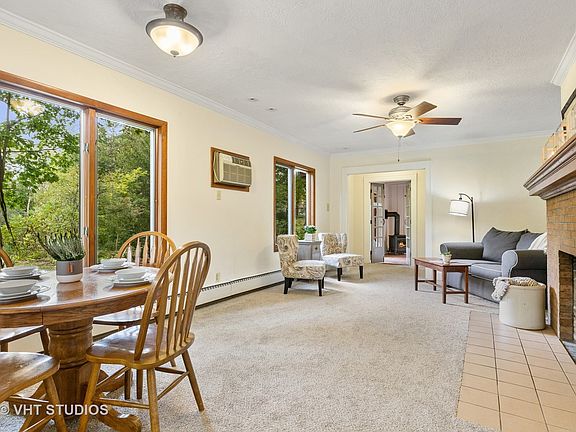 10/21: Offer Verbally Accepted, Processing Paper work - Looking for a "Little Bit of Heaven" well you found it. Driving down the newly resurfaced roads and hill, you can literally leave any chaos of the world behind. Uniquely private, this home nestles into nature beautifully. Surrounded by woods, pond, private park and, most notably, The Nippersink Creek, this location is SPECIAL. Pause on the patio before opening the front door and enjoy the sounds of this serene space. Walking into this four-season family room with cedar siding and wood-plank, beamed ceiling evokes feelings of comfort. Indeed, it is easy to picture cozy autumn and winter evenings snuggled in front of the pot belly stove for family movie night, game night, or turning pages of a good book. Rest assured, with the sliding glass door and picture windows, spring and summer are just as pleasant. Open the door and breezes, the sounds of the Nippersink, leaves fluttering, and songbirds fill the room. Beveled-glass French doors lead into the open, newly painted and carpeted, living and dining space. Light pouring in through its many windows, it is obvious that this home capitalizes on the natural setting. Gardens, birds and the creek provide year-round enjoyment. The original brick, wood-burning fireplace anchors the room inviting you to sit and stay awhile. Open to the kitchen, the heart of this home, family gathers easily and comfortably here. The bright, well designed kitchen with ample storage and countertops is large enough to share the work of large family dinners. The corner-sink has, quite honestly, the very best view. A useful utility/storage room off the kitchen is actually the home's original entrance, which could be converted to a main level laundry room. The first floor is completed by the master bedroom with original wood floor and WIC, along the same hallway is the office/second bedroom and a well appointed double vanity bathroom-all recently painted. Climb the stairs to two additional bedrooms, a quaint full bathroom and storage galore. Bright, cottage-feeling with pitched ceilings, built-in dressers and shelves, the bedrooms are ready to welcome you all your treasures. The lower level includes a walk out basement with siding glass doors which face south with access to a concrete patio with water front views of the Nippersink. Laundry and mechanical room are also located on the lower level with large windows with plenty of storage space. You must check out the (2) Car-Garage w/ (2) separate (7ft) Door Openings with enough space to park a Pick-Up Truck inside. Garage has built in wood staircase giving you access to an amazing open-air attic with window. Walk the north side of property and notice the lush perennial gardens, you will find (2) Storage Sheds, one with electrical and a RV-Hook Up outside. Too many words to describe this piece of heaven. Please see "VIDEO" for Drone footage of this amazing river front setting. Includes: 1yr CHOICE HOME WARRANTY for peace of mind.