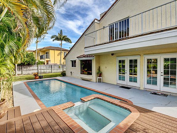 Custom built in 1990 and well maintained by the original owners, this home is located in Hidden Valley - East Boca's best kept secret. Every home is unique and the community has a park with tennis courts, a tot lot and picnic pavilion. Best of all - there is no HOA fee! Enjoy easy access to the beach, downtown Boca, Atlantic Ave. and I-95. Zoned for A rated schools - Boca High, Boca Middle and Calusa Elementary. One bedroom is located on the first level and is perfect for a home office, gym or guest room. There is also a full bath on the main level. The kitchen has upgraded stainless steel appliances, a wet bar and a breakfast nook. Gather around the wood burning fireplace in the family room which has French doors opening to the pool area with an over-sized lounging deck and waterfall spa.