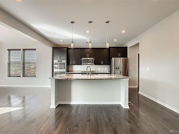 Stunning highly upgraded 4 bedroom home in the highly sought after Cobblestone Ranch community! This home features an open floor plan with living room off the entry complete with a ceiling fan, fireplace to keep warm on those cold winter nights and is open to the kitchen/dining room. The kitchen is an entertainer's delight with stainless appliances, upgraded counters/backslash, a large island that includes bar seating, upgraded pendant lighting, double ovens, gas cook top, oversize walk in pantry and plenty of counter/cabinet space perfect for entertaining! The dining room is adjacent to the kitchen and features a modern chandelier and backyard access. The primary bedroom won't disappoint with an upscale modern ceiling fan, large walk in closet and 5 piece en suite bathroom with round soaking tub for relaxation. Guest bedrooms share an additional full bath. Half bath and office conveniently located on the main level. The large unfinished basement is ready to be converted into your dream wine cellar, game room, home gym or additional guest quarters. Step out in your backyard to relax and enjoy the fresh air. The backyard even includes a swing set with fort and monkey bars with plenty of additional space for a garden and room for your furry friends. Community features include a pool, clubhouse and tennis courts. Located in close proximity to Cobblestone Playrground/park, Lone Creek Farms, Gemstone Park, Springer Park, Castle Pines Golf Club, Club at Pradera, Castle Rock Factory Outlets, Milestone Shopping Center and several other area malls/shopping centers. With so many nearby options for outdoor activities, shopping, dining and entertainment there is something for everyone!