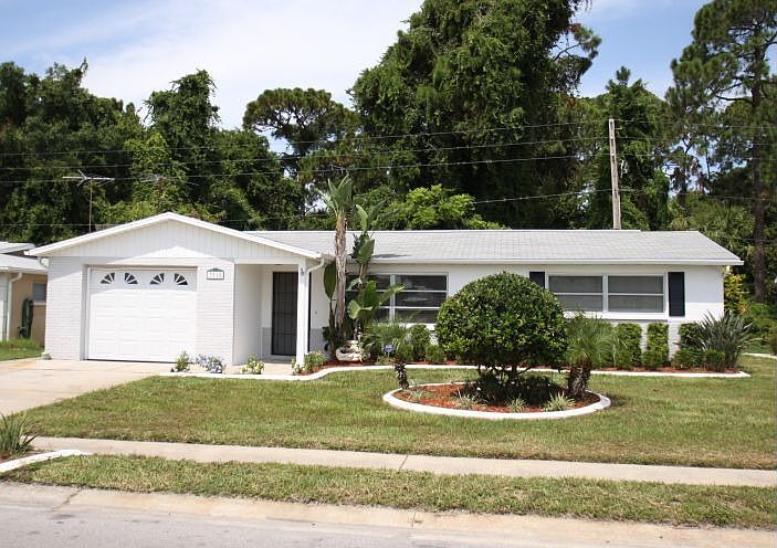 This true 3 bedroom, 2 bath freshly painted inside & out home which backs to conservation has a fabulous layout for any family. Open the front door to spacious living/dining room combo w/laminant flooring, neutral colors throughout! The eat-in kitchen has a large pantry, snack bar w/beadboard backing, tile flooring, double stainless steel sink w/newer appliances. Family room French door opens onto a patio which overlooks the preserve! Very private. The master bedroom has its own private bath completely updated w/a wood cabinet, solid surface counter top & tiled shower. The other 2 carpeted bedrooms are spacious w/large closets & share a bathroom complete w/white raised panel cabinets, tub w/shower! Ceiling fans, security system, newer hot H20 heater & A/C, oversized driveway, utility sink in garage complete this beautifully appointed home. Ready for immediate occupancy