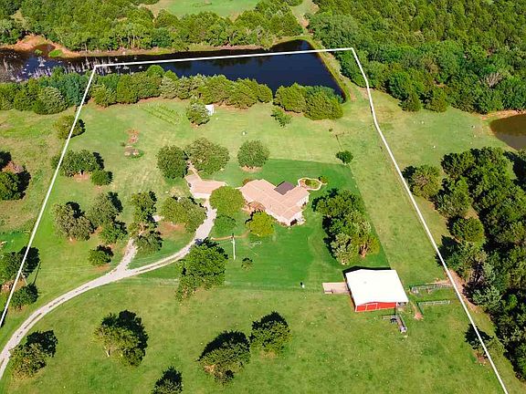 LIKE TO GET BACK TO THE BASICS? Then discover this country hideaway just 15 minutes south of Stillwater, shopping, dining & Oklahoma State University. This property is perfect for giving your family the chance to be close to nature. 10.5 acres of beautiful, well manicured, fenced property, perfect for horses, cattle, 4-H and FFA projects. Features of this property include: a 2450 sq ft Solitaire home with 4 bedrooms, 2.5 bathrooms & 2 living areas. Second living space (Great Room), large custom laundry room, sewing room, and master closet was added by professional builder Sten Steanson in 2004. If you just like to sit and enjoy the beautiful views and enjoy the peace and quiet of country living, there are decks on the front and back of the home. The back deck is very large and gated, for ease of keeping the pets contained or the children close by. Built into the deck, there is easy access to the 8 x 10 poured concrete storm shelter... room for all! All of this covered by a beautiful Pergola as well. Detached oversized 2-car garage with additional storage and an air-conditioned work space with stainless steel cabinet, separate water heater, built-in sink & a temperature-controlled wine vault for storing wine or canned goods (was used for a winery at one time). Your own Red Barn!!! 30' x 40' with concrete floor and electricity and overhead door with opener. Great for housing equipment or just a great shop with access to customized corral area connected to 5 acres of fenced pasture space. Did we mention Fish? One of the best parts of this property is the 2.5 acre pond/lake. This is shared by other property owners, but the majority is owned by this property owner. See aerial photos. All of this has been exceptionally maintained... Home has a new roof, new Trane AC/Heating unit and too many things to mention... you will have to schedule your appointment to take it all in. Seller is also providing an Americas Preferred Home Warranty, Inc, Buyers Warranty Plan for 1 year.