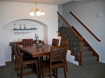 Upgrades include granite in kitchen, cherry cabinets and stair railings. Black Maytag appliances. Upgraded flooring tile in kitchen, entry and fireplace surround. The master suite has tall counters and a large walk-in closet. This energy efficient home features smart vent & Low E dual paned windows. Close to the heated pool and club house. Great restaurants and movie theatre just down the street. HOA includes water, sewer, garbage and insurance.