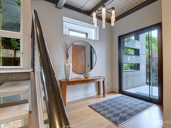 Modern home in premier Green Lake location with timeless design and quality you can feel. Commanding 5’ glass entry door, solid mahogany, extensive lighting, high-end finishes, custom cabinetry, & superior fixtures are complemented by a warm industrial vibe accented with concrete and steel. Chef’s Kitchen features prominent island, Sub-Zero frig, Miele built-in espresso, Dacor, and more!  Main floor Bdr/Den + 3 Bdr up including Primary with private deck, walk-in-closet and 5-piece bath. Amazing lower-level with bonus, wet bar, & walk-out to 2 car garage. Art walls, radiant heat, air, built-in vac, skylights, NanaWall, roof deck, storage. One+ block to 323-acre Green Lake Park. Nearby restaurants, recreation, theatre. A home and a lifestyle.