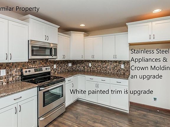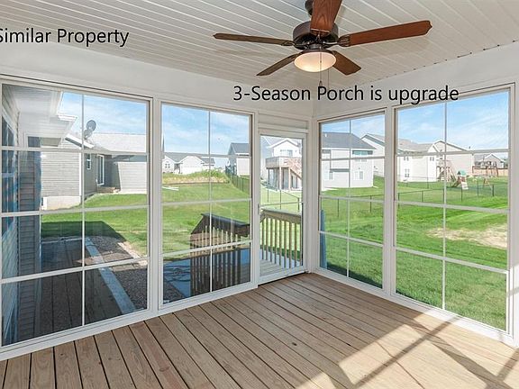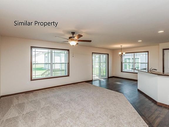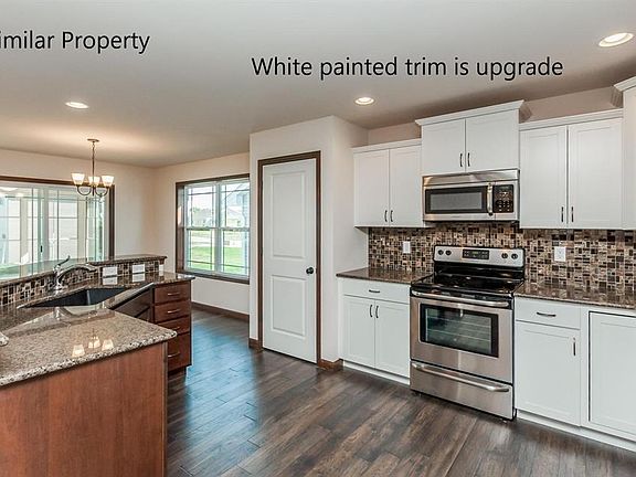 Abode's Mediterranean plan offers a spacious great room (with tray ceiling, kitchen with breakfast bar, and dining area that flow together to create an open feel. The kitchen includes beautiful cabinetry with crown molding, granite counter tops with a quartz sink, a tile back splash, and a pantry. The master suite is sure to please with a walk-in closet, bedroom featuring a tray ceiling, and bathroom with a double sink, walk-in shower, and separate tub. Another bedroom, full bath, and laundry room complete the main floor. This home offers a 3-stall garage, 3-seasons porch, patio and more. All kitchen appliances, except refrigerator, are included (black or white standard; stainless is an upgrade. Buyer can still make selections from a high quality group of products, including hardwood flooring in the kitchen, dining area and entry way, ceramic tile in the bathrooms and laundry room, and several vanity and cabinet options. The lower level could be finished to include 2 more bedrooms, a full bath (already stubbed for this, a family room, and plenty of storage space. The price for this 778 sq.ft. finished lower level is $30,062. Photos are of a similar property.