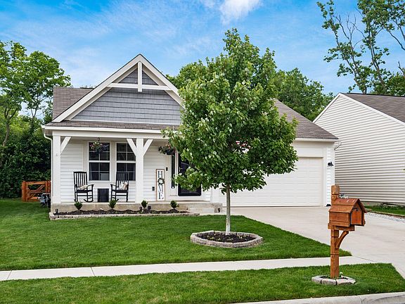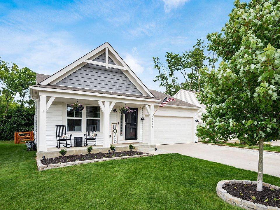 Welcome to 7516 Autumn Joy Avenue in the desirable Village at Abbie Trails subdivision! This custom-built ranch home was recently built in 2019 by the reputable, Fischer Homes. Entry level conveniently features 3 large bedrooms, 2 full bathrooms, first floor laundry, large owner's suite with en suite bath and walk in closet, a large kitchen with stainless appliances and a dining area that opens to a spacious living room. One of the many highlights of this home is the accessibility of having the living space all on one floor and having the extra living space that the full finished basement provides. New LVP flooring, carpet in 2022, water softener, ring security system with cameras, motion sensors, window sensors and flood lights, oversized driveway, large fenced yard, covered front patio.