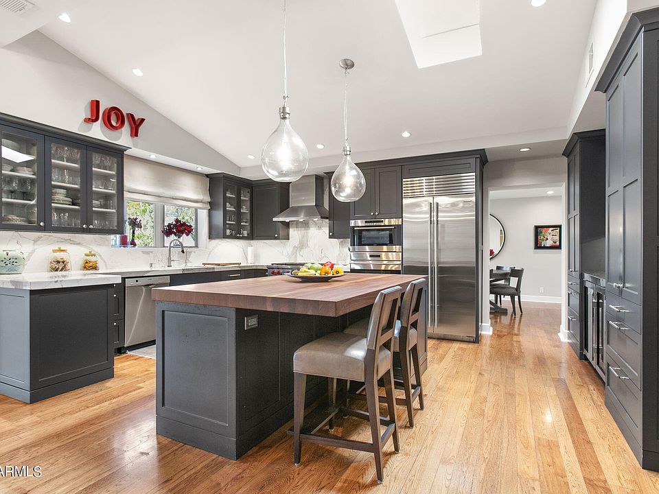 room.. The home is adorned with high-end finishes including Hickory Pecan hardwood floorsand sliding arcadia glass doors that fold so the living and dining areas seamlessly spill into the backyard and allow natural light to flood the rooms. The gourmet kitchen is a chef's delight, equipped with top-of-the-line Sub Zero fridge, wine cooler and beverage fridge