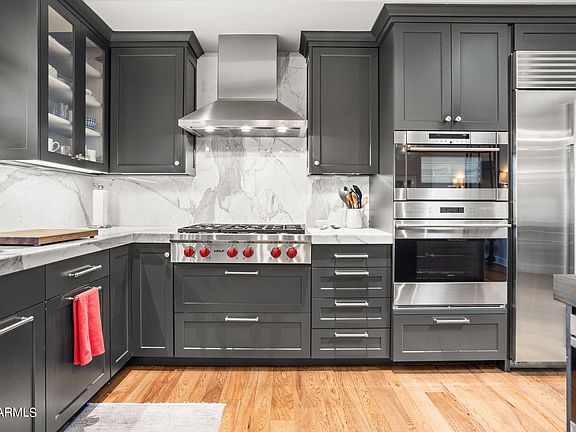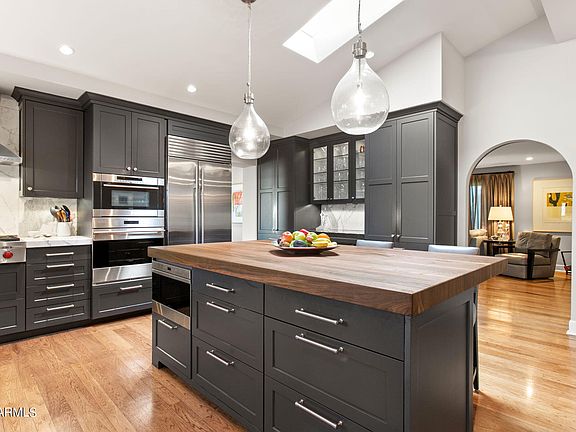 plus, Wolf 6-burner gas range, oven and steam oven appliances. Custom marble countertops and backsplash, and a black walnut island to gather around. Custom cabinets make the kitchen just beautiful and provide ample storage space. Adjacent to the kitchen is a stylish dining room, perfect for hosting memorable dinners.
