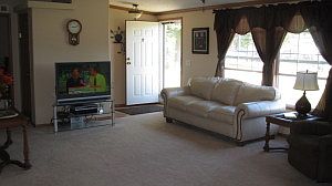 Very nice custom quality doublewide mobile home. 3BR/2BA, open floor plan, gas log fireplace, attached 50x14 garage/workshop, ref, carpet & laminate flooring. Less than 2 yrs old. RV pad with all hook-ups- 2 concrete patios.
