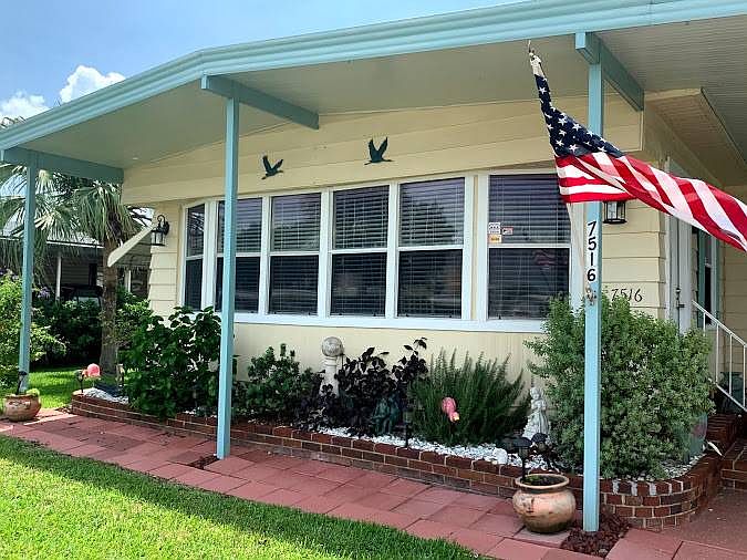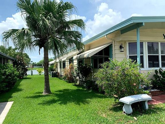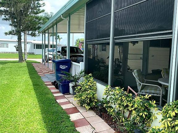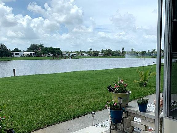THIS home is on one of the most amazing lots in Colony Cove. This two bedroom two bath home has three large lanai that from all angles wonderful views of a big lake with a fountain. Master bathroom sets in the back of the home and off the sliding glass doors is a nice deck to enjoy your coffee as you watch the wildlife on the water. Master suite is large enough that holds a king size bed and as a over sized walk in closet. New sliding glass doors have just been installed in the master bath with a new shower base as well. Ceiling fans are installed in both bedrooms, living rooms and Lanai's. The large front living room is surrounded with windows that offers a ton of sunlight and is a perfect place to entertain. Dining area has beautiful built in cabinets with stain glass panels. This home has had a ton of updates, which makes it like buying a new home but with much larger square footage. A three lanai's have indoor/ outdoor carpeting. Vinyl slider windows with screens. Lot rent $ 1,038.00 Colony Cove is a resort-style community designed around an active 55+ lifestyle, with waterfront views to spare and a variety of amenities and activities to enjoy. For a comfortable, affordable lifestyle with year-round sunshine, Colony Cove is sure to be your ideal community. Ellenton is a small, quaint town in Manatee County that benefits from warm tropical breezes and an easy-going, friendly atmosphere. With plentiful opportunities for leisure and recreation, you'll certainly take pleasure in Ellenton's comfort and conveniences. UPGRADES 2014 Installation Pergo flooring and plywood underlay 2014 Indoor/outdoor carpet through entire lanai 2014 AMS Aluminum Roof w/insulation over house roof 2016 Hot water heater 2016 Goodman Air Conditioner and Heat Pump 2017 Front room carpeting 2017 Driveway painted 2017 New Tie-Downs installed 2017 Arlo security cameras installed (4) 2018 New smoke detectors installed 2019 Ductwork replaced underneath mobile home Updated Kitchen appliances - drinking water filter installed at kitchen sink New shower base and doors Master Bath Standard size toilets installed in both bath rooms Extra-large utility room with washer and dryer Small outside storage shed All listing information is deemed reliable but not guaranteed and should be independently verified through personal inspection by appropriate professionals. Integrity Mobile Home Sales cannot guarantee or warrant the accuracy of this information, measurements or condition of any property. Measurements are approximate. Lot rent is subject to change.