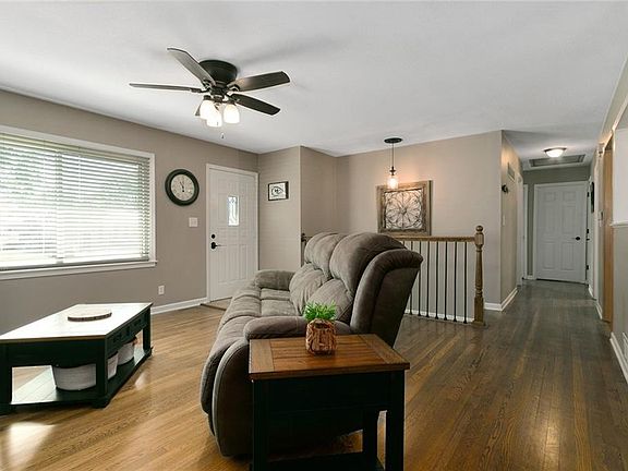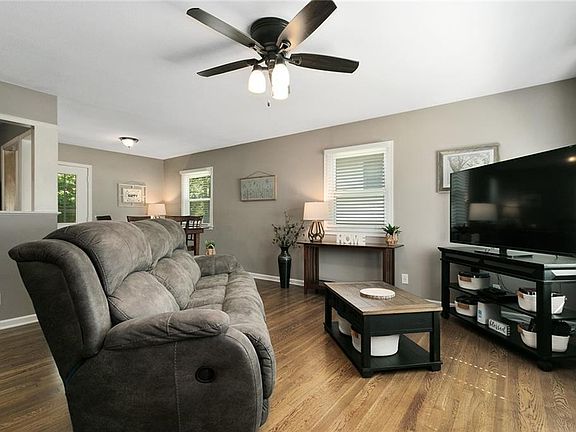 ENTICING Ranch/Raised Ranch in Gladstone! This charming home features main level living with 3 bedrooms. Wood floors throughout the home are a real upgrade! The full bathroom has been remodeled with on-trend stone look tile, farmhouse vanity and beautiful color scheme. The floorplan is open between the living room and designated dining space, with partially open kitchen. Enjoy the view of the large backyard with wooded area for privacy, from the upgraded thermal windows throughout the whole house. The backyard would make for a great oasis with both a deck AND a patio, complete with fencing. Easily add VALUE to the home by completing a master bathroom - currently stubbed for a half bathroom but could be expanded, a few cosmetic updates and/or by finishing the WALK OUT basement!