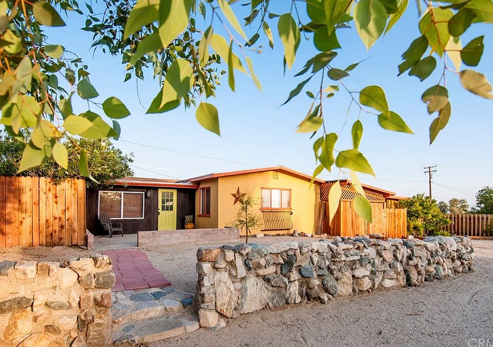 Welcome to Persia! So colorful and inviting with a main house and detached Guest Studio! You will be charmed upon entry by a cozy enclosed front gathering room with double French doors and plenty of light. Historic meets chic in this lovely entry hall with its sparkly chandelier and understated charm. Large picture windows fully dress this spacious living room that invites guests to gather and chat at the kitchen bar. Stainless appliances compliment this dreamy mint green kitchen. Bath and shower are adorned with retro tile and feature a free-spirited cowboy that will surely bring a smile. Sizable bedroom is outfitted with double closet storage space. Indoor laundry room is large enough to serve as an artist retreat or workout haven! As you exit into the side yard, you will be pleased to see that we love our pets! We are definitely dog friendly! Woof! Enclosed carport area can serve as a gathering spot or great extra storage. The detached Studio Casita is perfect for guests or could be a second income to finance this sweet beauty! It is an enchanting retreat with charming accent tile, a bedroom nook, comfortable living room area and plenty of room for a small dining table. So much space to fall in love with here! Guest house has its own laundry room and storage area. Lovely garden gathering niches in front and back. Bonus close proximity to the Joshua Tree National Park, Tortoise Rock Casino and everyone’s historic favorite, the 29 Palms Inn! Call to schedule a viewing today!
