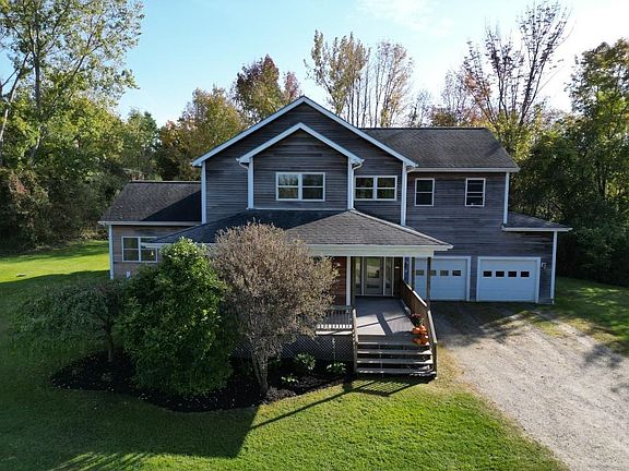 This stunning 3-bedroom, 3-bath home in St George perfectly blends green living with modern comfort. Nestled in a private country neighborhood, it offers both tranquility and convenience. Just a short drive to Hinesburg or Shelburne Village, minutes from walking trails & Lake Iroquois to enjoy nature. The spacious layout features a large family room filled with natural light, cathedral ceilings, & a cozy gas fireplace, creating an inviting atmosphere for relaxation and gatherings. Updated kitchen with breakfast bar flows into your dining room with access to your rear deck. Beautiful maple hardwood floors flow throughout, complemented by charming cedar siding that enhances the exterior's aesthetic. This house was built with intention! Enjoy outdoor living on the covered front porch or the expansive back deck, perfect for entertaining or unwinding in nature. A versatile first-floor office or den provides the ideal space for work or study. Enjoy your cozy reading nook featuring pellet stove for those chilly Vermont nights. Primary suite upstairs serves as a serene oasis, boasting dual walk-in closets, comfortable sitting area for relaxation and ensuite bath. Two additional spacious bedrooms, each with walk-in closets, ensure plenty of room for family or guests. This home is not just a place to live; it’s a retreat that embodies the principles of green living while providing all the modern conveniences you need in a peaceful, private setting.