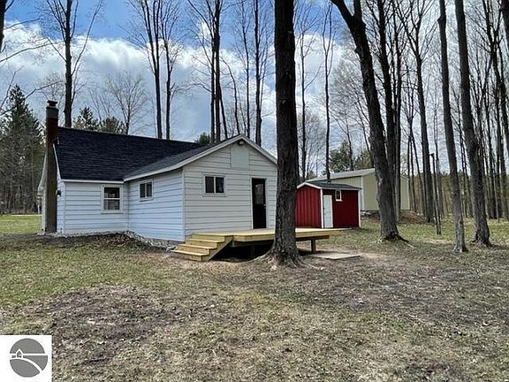 This enchanting 2BR/1bath cottage is the perfect mix of style and nature! The completely remodeled interior boasts luxury vinyl flooring, lighting, all new appliances, new furnace, water heater, and roof. Enjoy the added bonus of a detached sauna with shower and pole barn. All this on 4 wooded acres with maples and abutting State land create an idyllic natural setting you won't want to miss! STR is allowed. Located just 0.30 mi. past the Grand Traverse County line, lower taxes, well maintained road, hundreds of acres of State Land! Additional detailed information can be found online.