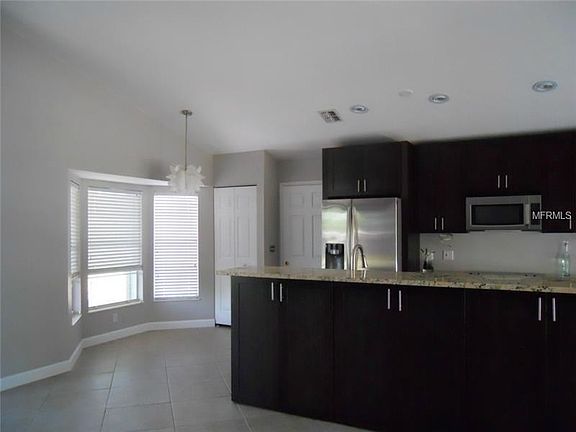 Natures Hideaway updated home on an oversize lot. Three bedroom two bath two car garage that boosts a new kitchen with dark wood cabinets, granite counters, stainless appliances. Both bathrooms are updated with designer tile. 18" neutral tile in living,dining ,kitchen area. Freshly painted with all the new trending colors. Volume ceilings. Oversize screened patio overlooking an expansive yard.