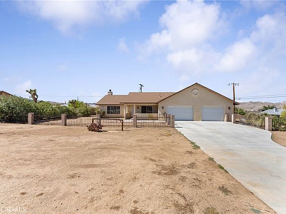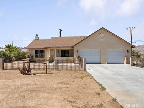 Welcome to 7516 Victoria Ave near Joshua Tree National Park! Amazing Opportunity to own this attractive and fully-fenced single-story SFR Home with upgraded 3 large bedroom, 2 modern bathrooms (1,677 sqft of living space), attached 3-car garage and impressive 18,680 SF Lot size. Perfectly suited on a spacious corner lot! Step inside and appreciate the brand new carpet flooring and painting throughout the living room with a cozy wood burning fireplace. All bedrooms feature new carpeted floors, ceiling fans and large windows. The spacious kitchen features a generous amount of cabinet storage space, and a cute window providing a warm bright environment to cook your favorite meals. Other features include: Central AC & Heat, lovely patio, etc. Highly desirable neighborhood and convenient location, close to the 29 palms Fwy, restaurants, commercial facilities, etc. Don’t miss your dream desert home and a must-see to appreciate! Please watch the video tour: https://www.youtube.com/watch?v=Q6wrkBL3rTA