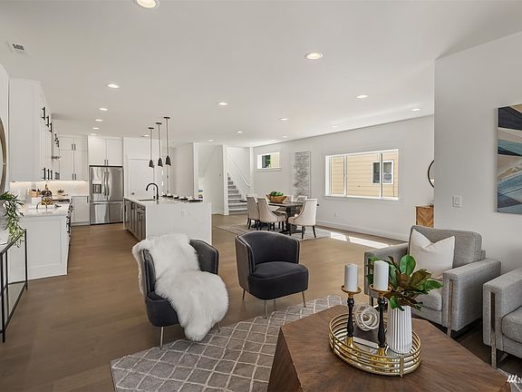 This stunning new construction home with attached ADU boasts luxury finishes and 3,010 sq. ft. The main home is 3 bed/2.5 bath and ADU is 1 bed/.75 bath with optional separate entrance. The main floor features a spacious open-concept great room with feature gas fireplace, gourmet style kitchen, under cabinet lighting, SS appliances and an oversized island, dining area, powder room and partially covered deck. Upper-level features Primary Bedroom with walk-in-closet, five piece suite with luxury soaking tub, two additional bedrooms, bathroom and laundry room. Other features include custom fence, AC and two car garage. Convenient to local amenities and Seattle.