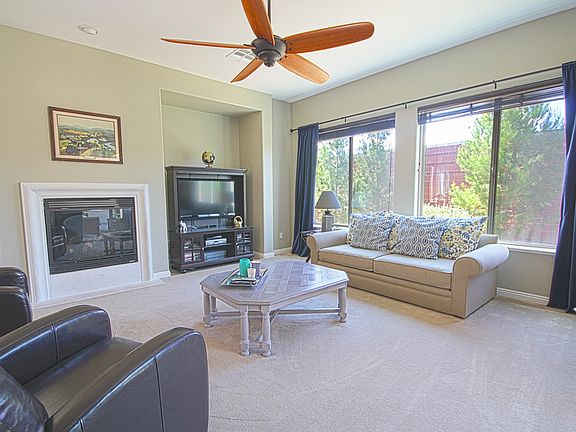 Located in the exclusive Club Aliante guard gated community, this home boasts the largest single story floor plan. It has three spacious bedrooms, 3 baths, an office/den with double doors, formal dining area and family room w/fireplace.Your inner chef will enjoy plenty of space in the kitchen with custom cabinets, double ovens, gas cooktop, granite counter tops and stainless-steel appliances. After you're done enjoying all the house has to offer,step out on the covered patio which backs up to a peaceful green way with a privacy fence. To keep things cool, the house comes with solar shades on windows and a motorized retractable screen on the patio.The home is located on a quiet street, close to an entrance/exit gate for added convenience.The community comes with lots of amenities, including a life guarded pool and spa, private clubhouse, childrens play area, gym, basketball and tennis courts.Beautiful house and great location!
