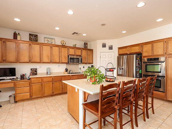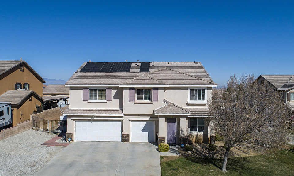 This west side Lancaster home is an entertainers' dream! Large 2 story open floor plan with 5 large bedrooms ensures you have space for everyone in the family. The home greets you with bright and airy living and dining rooms leading way to the eat-in kitchen. The kitchen is truly the heart of the home with tons of cabinets, large center island and stainless steel appliances. Convenient downstairs bedroom is perfect for guests or home office space. Upstairs you are greeted to a spacious loft perfect for an additional living room. The master bedroom has a walk-in closet and master bath complete with a beautiful bathtub and separate shower.The backyard is a desert oasis with a gorgeous rock adorned solar-heated pool, covered patio, fire pit and large grass area. RV access has room for your toys. Welcome home!