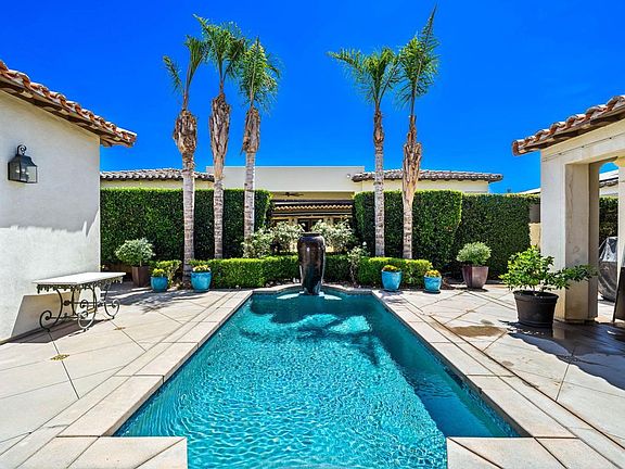 Discover the epitome of elegance and sophistication with this former Model Home, now available within the prestigious gates of The Province community in the heart of Indian Wells. Designed for the discerning entertainer, this stunning property is equipped with all the luxurious features you need for hosting memorable gatherings.Step into the gourmet kitchen, equipped with dual islands, four ovens, two dishwashers, a commercial ice maker, a heating bin, and two wine coolers. Revel in top-of-the-line appliances, including a Sub-Zero glass front refrigerator and Wolf ovens, offering the ultimate culinary experience. The open-concept design connects two inviting living areas, with the kitchen perfectly situated in between, making entertaining seamless.Multiple French doors lead to the serene outdoor pool and dining area, where a heated, saltwater Roman-style 18 x 10 pool awaits. The primary suite offers tranquility, complete with an expansive walk-in closet featuring a large cabinet island. Indulge in the spa-like bathroom with a steam shower, a separate soaking tub, and dual vanities. Each guest bedroom comes with its own elegant ensuite bathroom, ensuring privacy and comfort for family and guests.Impeccable details enhance the home's grandeur, including high ceilings, gracious arches, two fireplaces, triple crown molding, and 8' tall solid core doors.Enjoy the luxury of modern climate control with two new state-of-the-art Air Conditioning units, ensuring comfort throughout every season. Additionally, this home boasts leased solar panels that are paid off, providing sustainable energy and reducing utility costs.Embrace the opportunity to own a home that truly embodies sophistication and comfort, nestled in a community that offers unrivaled prestige.
