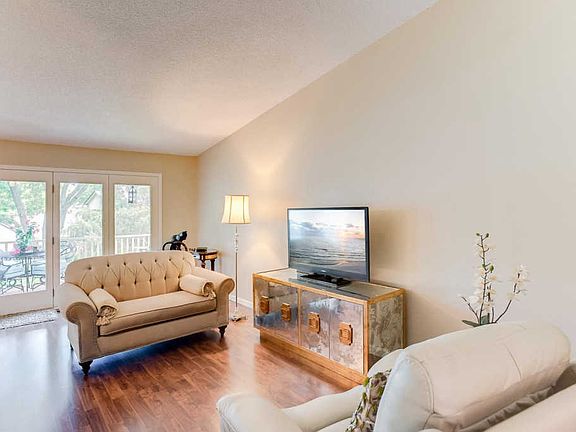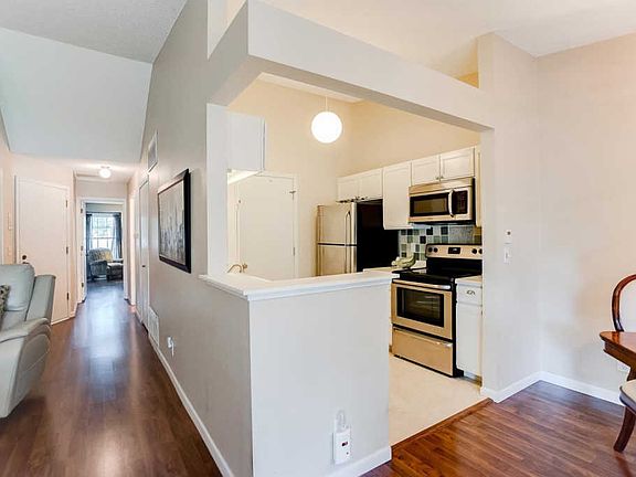 Move-in ready upper level unit w'vaulted ceilings. 1 bd/1ba, updated kitchen w'heated tile floors. Charming enclosed balcony with must see view of peaceful courtyard also offers beautiful sunrise and/or sunset views. You'll appreciate the large master bedroom w'generous master closet & the large front hall walk-in closet. Newer cent air conditioning, newer furnace, newer flooring, newer lighting and in-unit laundry. 2 shared outdoor pools.