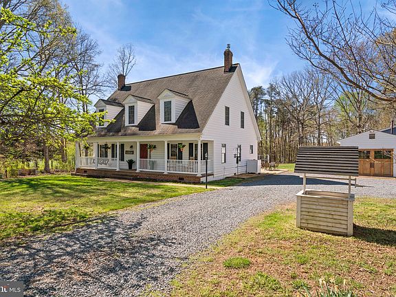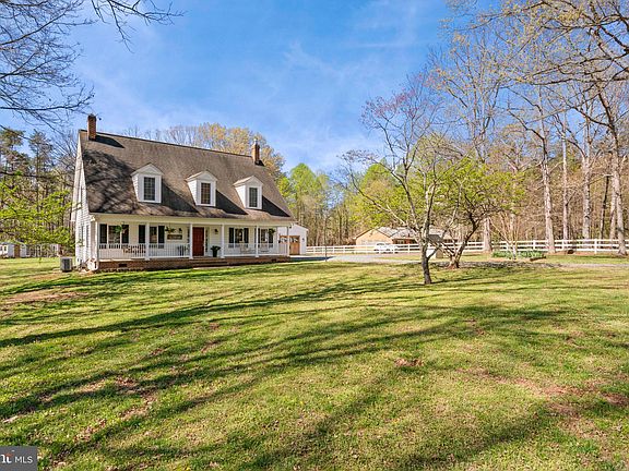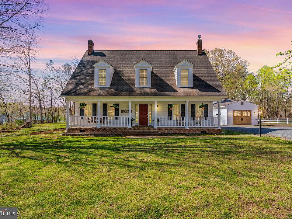 UNDER CONTRACT - OPEN HOUSE CANCELED. This charming Cape Cod style "Farmhouse" home is situated on 3 peaceful acres in prime Locust Grove, providing convenient access to retail shops, major highways, and historic battlefields, and is about a half-hour to both Culpeper and downtown Fredericksburg. This 2-story, 5-bedroom, 3.5-bathroom home offers a plethora of impressive features. The expansive country front porch is the ideal spot for relaxing and sipping on your favorite beverage on a lazy afternoon. Step inside to find a roomy family room that greets you with a gas brick fireplace. The kitchen is a homeowner's dream, with granite counters, stainless steel appliances, custom cabinets, and a breakfast bar that flows into a generous dining area. The original pinewood flooring adds a warm touch throughout the home. The main-level primary suite is a tranquil retreat, with an en-suite bath that includes a walk-in shower, jetted tub, and access to a spacious walk-in closet. Upstairs, there are 4 additional substantial bedrooms, all with sizable closets, and two full bathrooms. If you're impressed with the interior, wait until you see the exterior - beyond the front porch, the back boasts a stamped concrete patio that is perfect for grilling and entertaining guests. After dinner, gather around the custom-built fire pit for a cozy evening. There are 2 outbuildings/garages, The smaller garage has been repurposed as an office and features heat and air. The bigger garage is a "4-car garage" that can be reimagined as an amazing craft area or man cave or she-shed, complete with its own full bath, kitchen cabinets/sink, and ample storage. To top it off, there's even a newer chicken coop on the property. Don't miss this fantastic opportunity! P.S. Xfinity internet is available.