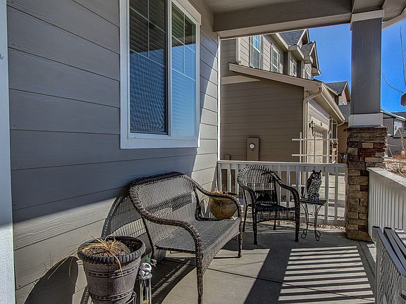This gorgeous Cobblestone Ranch two story features a fully finished walk out basement, five bedrooms and four bathrooms. Walk in to a main floor study or extra living area and continue through to a spacious chef's kitchen that opens onto the dining and family room area. The kitchen boasts all stainless steel appliances including a brand new dishwasher and double ovens, perfect for baking or hosting large gatherings. The kitchen and dining area open right on to the walk-out deck with gorgeous views of the hills and there is plenty of space for outdoor dining. Walk down the deck stairs to enjoy more outdoor space, fully shaded and perfect for gathering around the firepit on beautiful Colorado evenings. The second floor features four bedrooms, including two secondary bedrooms with brand-new Elfa closet systems and an upstairs laundry room for convenience. The finished basement features a large extra bonus space, a three-quarter bathroom and another large bedroom with its own walk-in closet. Radon mitigation is installed in the basement and there are two large storage spaces. The backyard has been lovingly improved and now features two garden beds and new Colorado native plants and scrubs. Rose bushes have been added in the front yard and are now in full bloom. Competitively priced for a quick sale, there is nothing to do but move in. Come and enjoy all of the amenities that Cobblestone Ranch has to offer, including ample trails, neighborhood clubhouse and pool!