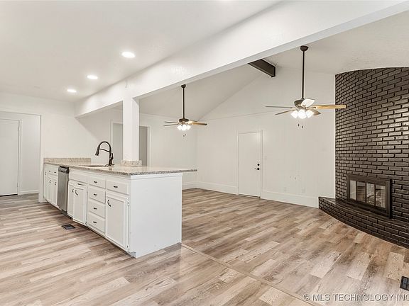 Valley South, Centrally Located in South Tulsa, 4 Bedrooms, 2 Full Bathrooms plus office space. Conveniently located for shopping and entertainment. This freshly remodeled home features nice new floors found throughout, granite in both bathrooms and kitchen, fresh paint. The spacious living room is vaulted & beamed, has a cozy brick fireplace with gas logs and is open to the kitchen. The kitchen features beautiful granite counters, new oven-range, new dishwasher, breakfast nook and opens to a formal dining that would also be ideal for an office! The Master is a nice size with a walk in closet and full bath. Outside you will find a relaxing wood deck. Schedule your showing today!