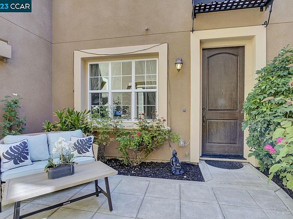 Spacious home, built in 2010, situated in the desired Gale Ranch community. A private & welcoming court yard welcomes you to this townhome incl a 2 CAR ATTACHED GARAGE w epoxy flooring, storage cupboards & electric charging outlet. An appealing first-floor bedroom with bathroom offers a versatile space that can serve as an accommodation for traveling guests or for use as a home office. Upstairs you will find the open concept great room featuring pre wired surround system, gas fireplace w access to the balcony which is perfect for entertaining & relaxing. The impressive kitchen features a center island, stainless steel appliances, overlooking the great room, incl a dining area. Primary bedroom suite w built in closet, walk-in-closet & en-suite bathroom including dual sinks with large shower and separate water closet. 2nd floor bedroom w full hall bathroom is also on the 2nd floor in addition to the laundry room. Home is equipped wi whole house fan. Conveniently located within walking distances to A+schools, community park, pool, clubhouse, playground trails & greenbelt. Short drive to City Center, Bishop Ranch & golf at The Bridges. Easy access to FWY & Bart.