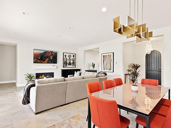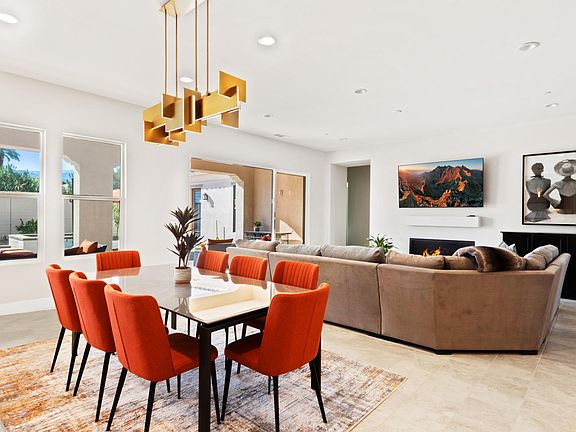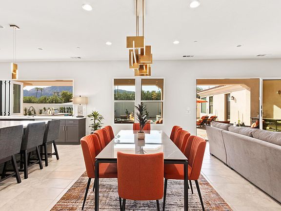 As you step into this exquisite abode, you'll be greeted by contemporary furnishings tailored for luxurious indoor/outdoor living that dreams are made of. The great room, kitchen, and dining area seamlessly blend together, creating the perfect space for relaxation and entertainment. Slide open the glass doors, and you'll find a generous covered patio, an ideal spot to soak in the desert's sunsets or enjoy a leisurely brunch.