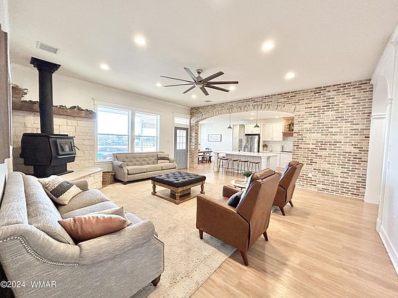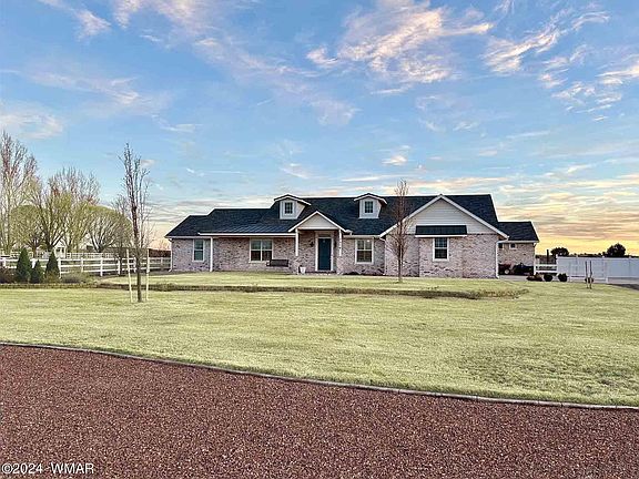Welcome to this stunning property nestled in a prime location just minutes from Main Street in Snowflake, Arizona! This expansive estate boasts a spacious main house spanning 3170 square feet, complemented by a generous 2,700 square-foot Casita, perfect for accommodating guests. Upon entering, you'll be greeted by a grand foyer, setting the tone for elegance throughout. The family room features a cozy wood stove, creating a warm and inviting atmosphere. The gorgeous kitchen is adorned with granite countertops. Entertain guests in the spacious dining area, accented by a charming brick wall. Retreat to the master suite, boasting generous proportions and luxurious amenities including a soaking tub, his and her sinks, a private toilet area, and a walk-in shower. Discover an oversized laundry room complete with ample cupboards and a convenient sink, making household tasks a breeze. As you navigate the hallway, you'll appreciate the organized storage solutions and a refreshing drinking fountain, adding both functionality and convenience. Work from home comfortably in the office, featuring built-in cupboards for optimal organization. A flex room awaits the kids, providing versatility for play or study near the other 3 bedrooms. Detailed to meet your desired preferences, the main home is equipped with a high-efficiency propane heater and solar panels, ensuring comfort and sustainability.