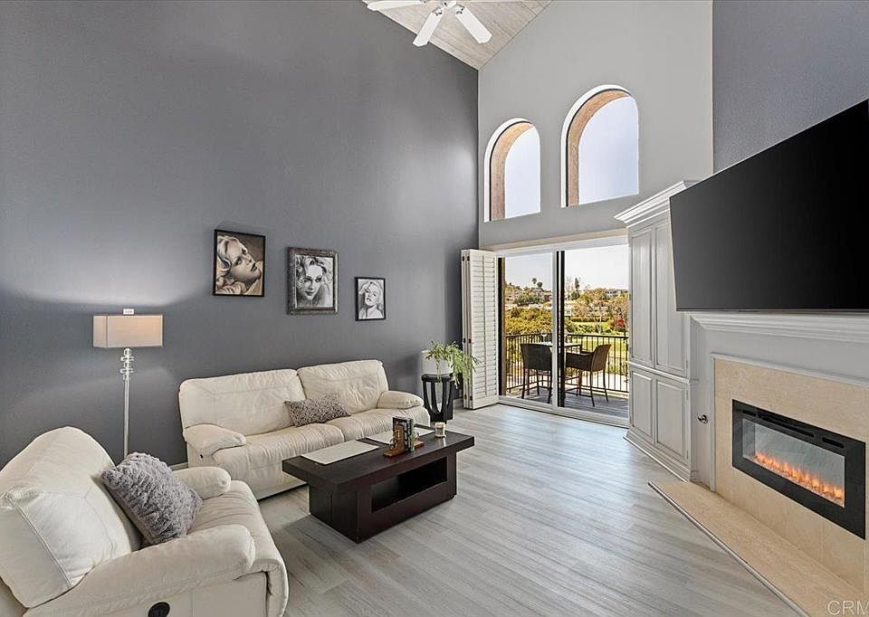 Welcome to this magnificent 2 bedroom 2.5 condo that lives like a single family home and is over 2,000 of open living space overlooking hole 14 of the Omni La Costa Golf Course. Sitting inside a small and private gated community, this home features stunning interior design including 2 story ceilings in the living area that are flooded with natural light from all directions. Equipped with a large kitchen with stainless steel appliances, granite countertops and travertine floors that opens to your dining room and living room as well as a beautiful outdoor atrium. Wonderful sunset views from your private balcony of the community pool and golf resort. Set up as a dual primary suite with each bedroom featuring a walk-in closet, vaulted shiplap ceilings and ample space. Primary bedroom 1 features a gas fireplace to bring an extra level of ambience into the room and Primary bedroom 2 features a murphy bed - making it ideal for a home office/guest room. Oversized 2 car attached garage comes with 240V EV car charger plug. Bonus features include dual pane windows and doors, water filtration system & electric fireplace in living room. Whether you are looking for a destination spot that is "lock and go" or a forever home in the heart of La Costa, this rarely available home checks all the boxes.