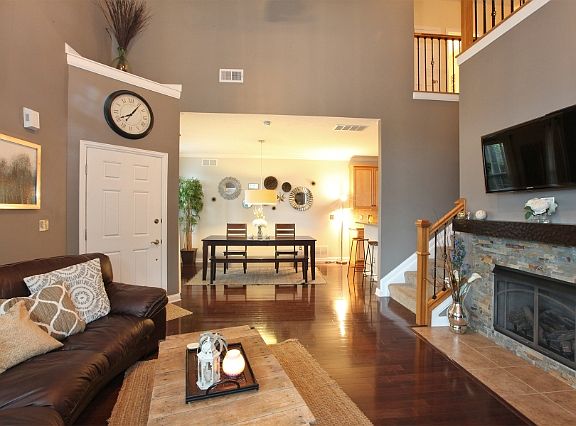 Stunning 3BR with two story great room and open floor plan! Beautiful stone front fireplace and gorgeous hardwood floors highlight the great room. Crown molding and HW floors in the dining room. Amazing kitchen features granite counters, SS appliances, tile backsplash, large pantry, beverage cooler, and cabinets with a crown finish! First floor master suite with dedicated full bath and walk-in closet. The upper level offers two additional ample sized bedrooms with double closets. The loft provides a great versatile space! Relax and enjoy the front patio! The Lakes of Worthington offers a scenic green space featuring a ravine and gazebo!