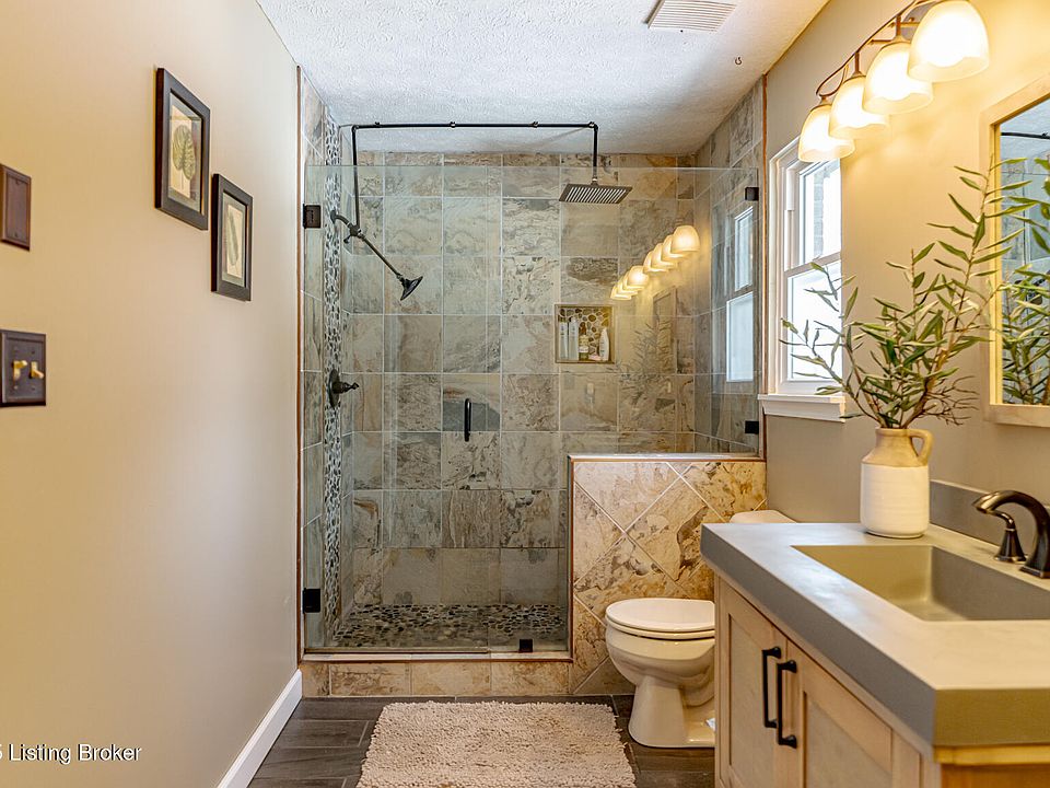 Welcome to 7519 Newton Drive. Louisville Ky 40228 in Apple Valley Subdivision. Fantastic Fine! Three Bedrooms & Three Full Bathrooms, Primary Bedroom (17by13),Private Entrance To Large Deck. Primary Bathroom Totally Updated With A New 6 Foot Tile Shower. Vaulted (24by18) Great Room Has Two Skylight & Fireplace & Office Area That Tuck-away in That Room. Fantastic Kitchen With New Appliances & Modern Cabinetry With Breakfast Bar, New Plank Tiles Flooring Which Lead to (13by13) Dining Room Has Double Window For Prefect Lighting. Full Hall Bath, New Vanity & Tile Flooring .Second Bedroom (12by14) Third Bedroom (14by11). Property Has Newer Double Tilted Windows and Real Hardwood Through Out. Particularly Finished Basement Has (17by20) Family Room , Full Bath, Exercise Room.Man Cave. Home Has (18 by 13)Unfinished Laundry Room. Walk Outside Has Cover Screen-In Porch With Projector Like Room. Home Has A Concrete Court, That Completely Inclose From All Side. Above Ground 24 Foot Round Pool , With Decking All Around. Two 14 By 14.5 Deck, Huge Patio. Home Has 24 by 12 Storage Shed. Privacy Full Fence. Home Has A Nature Reserve Behind Property. Property Has Got A Lot To Offer Great For Entertaining And Privacy. Property Is Super Immaculate Inside and Out. A Show Is A Sell!
