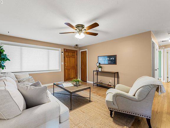 Remodeled one level home close to park. Gorgeous, refinished hardwood flooring. Remodeled kitchen, fresh interior paint. Updated bathroom with new vanity, mirror & flooring. Primary bedroom w extra office or turn into the perfect nursery. 2 more full bedrooms. Covered back patio & large yard, fully fenced. 4 blocks to Elementary School. Priced to sell. [Home Energy Score = 5. HES Report at https://rpt.greenbuildingregistry.com/hes/OR10203874]