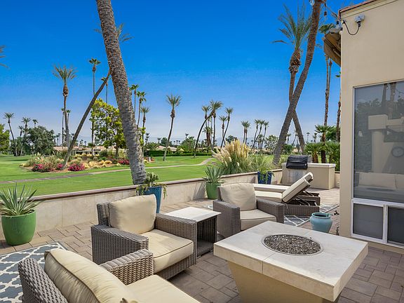 Fairway & Mountain views are yours from this spectacular 3 bedroom/3 bath completely Remodeled Furnished Turnberry - Solar - home located on the 17th Fairway. You will find custom Upgrades, designer finishes, Neutral tones and Modern furnishings in perfect balance with the relaxed desert lifestyle. A private courtyard welcomes you into this tastefully appointed home perfect for entertaining; Living Room with open spaces & a Fireplace as the focal point, Windows showcasing the View, Wet Bar & Wine Cooler, formal Dining area and a Family/Den Room with custom built-ins. Upgraded Kitchen with new Stainless Steel Appliances, Farmhouse Sink, white Shaker cabinets, Granite Counters & subways tile backsplash. A Luxurious Master Suite offers a Spa Tub, large Shower, walk-in closet. 2nd Guest Room. A separate Casita with a full en-suite bath. Features; custom Paint, Tile in main rooms, custom built-ins, Lighting and ceiling fans. As you step out to the entertaining Patio and enjoy the views of the Fairway, swaying palms and built-in BBQ, a 3 car garage with aircondlting complete the home at this premiere Indian Wells Location. Community pool is just steps away.