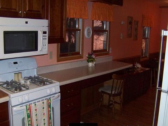 This Waterfront property was totally remodeled in the last 3 years. Cherry kitchen cabinets and new appliances. Gas fireplace in the living room. Large rooms in the entire home with wonderful views of the river. Additional 2 garage on property for boat storage gives you space for all your toys. You will not find a nicer home in the New Boston area for this money and you can live here all year