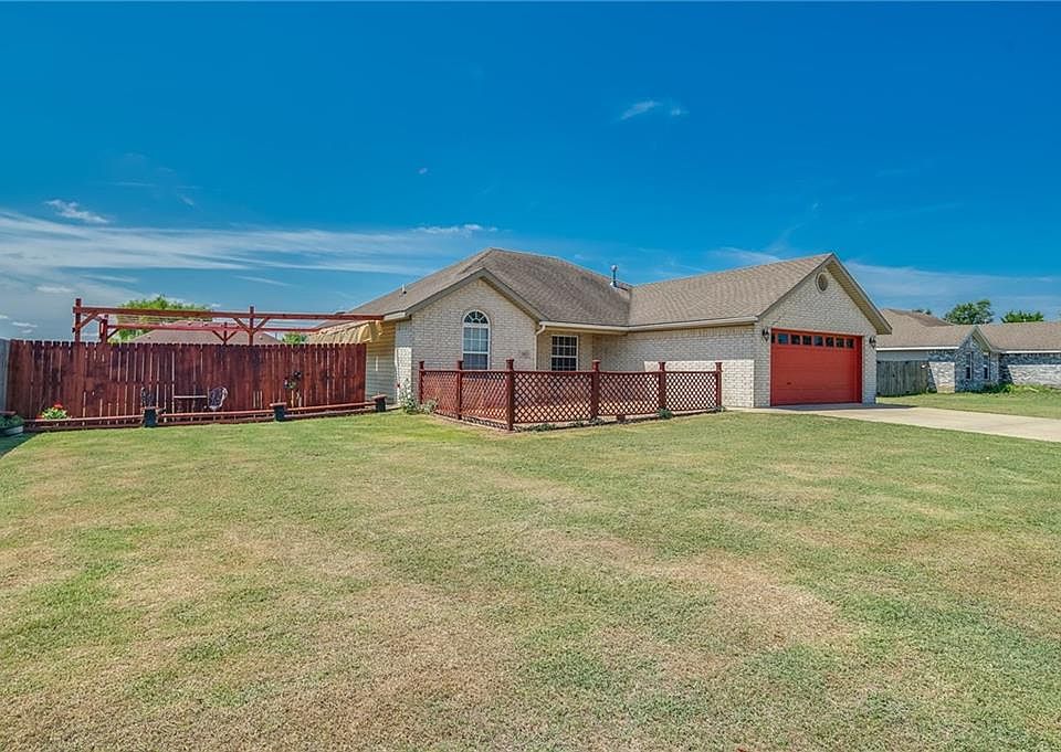 Beautiful Brick Home has wonderful landscaping & large front yard! Living room has a gas log fireplace, soaring vaulted ceiling & back door with doggy door. Kitchen has plenty of cabinet space & leads into the utility room. Large master bedroom with tray ceilings and master bath. Spacious bedrooms. Huge backyard with retractable cloth covered area perfect to entertain in the shade. You won't run out of storage space with 2 storage buildings. Nice fire pit for those evenings outside enjoying the night air and a privacy wood fence. Heating & a/c was replaced last year. This won't last long!