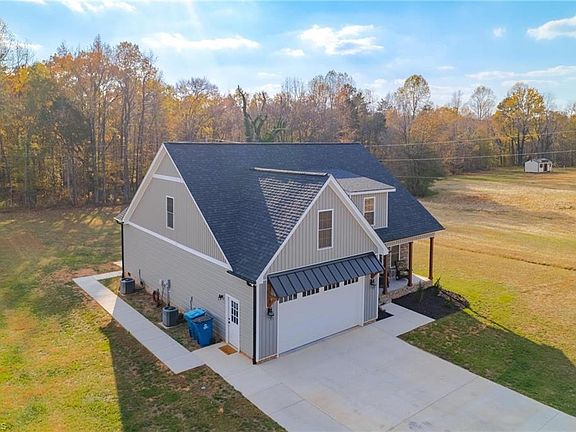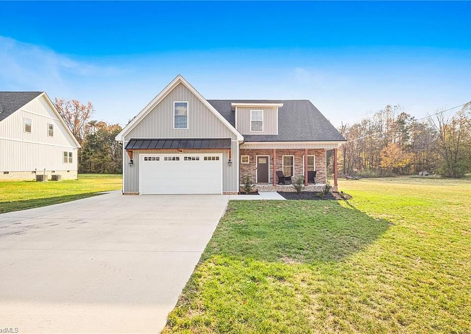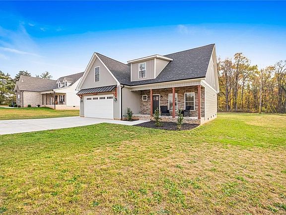 Captivating 3BR, 2.5BA Mocksville home on 3/4 acre, featuring hardwood floors, an open concept flooded with natural light, and a charming wooden staircase with metal spindles. Upstairs offers a sitting area, 2 bedrooms, and an office/bonus room. French doors lead to a deck and patio, complemented by extra concrete for parking and a stylish back patio. Enjoy granite surfaces with undermount sinks in all kitchen and bathroom spaces, along with stainless steel appliances. Convenient two car garage with a side entrance completes this exquisite property.