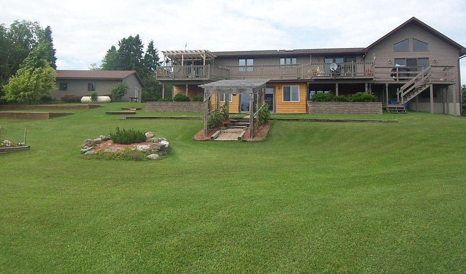 Large 3 bedroom 3 bath Executive home sitting on 19+ acres within 10 minutes from town. This home features a nice open concept floor plan surrounded in windows with amazing views of the 2 ponds and abundance of wildlife. Master suite with bath and doors leading to the deck that extends the length of the house. Large great room with pellet stove, and lower level family room with stone fireplace and beautiful hot tub room that engulfs the surrounding nature. Home also has 2.5 attached garage along with a 2.5 detached garge and and additional out building for extra storage. New roof and new stainless steel well pump in 2017.... Must see to appreciate the park-like setting.
